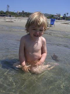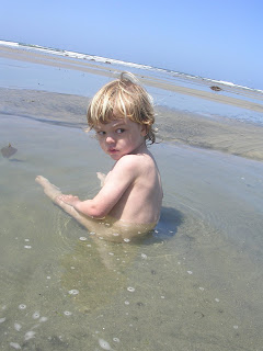 Elan loves the water. If you take this child to the beach, you better be ready to get wet, no matter the temperature (water or air). He was in heaven when we found these pools left by the retreating tide. For once, he could go in (almost) by himself, and I stripped him down so he could get fully soaked.