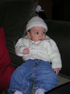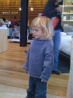 Elan is lucky to have a great-grandma (my Grandma Syl, known as Bubbe in our household) who knits for him. This is a good thing since his mother has been known to set aside items that need a button sewn on for when her mother-in-law visits.